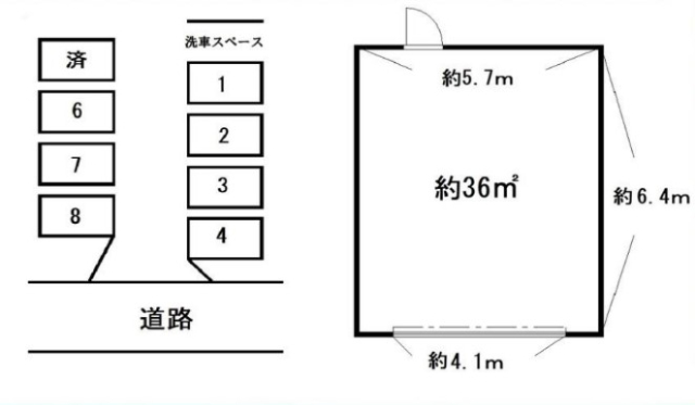 ・法人使用可能 ・全8区画 〈設備〉 コンセント(2か所)、電動シャッター(リモコン式)、入口シャッター高さ約2.3km、屋外灯、屋内灯付 |