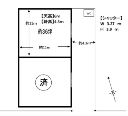 ・保険等:加入要 借家人賠償保険 ・トイレは汲取り式の共用トイレの為汲取り清掃費用は隣のテナントと折半。建物未登記。 ・接道状況:南西 ・駐車場有:無料 ただし、倉庫前面部分のみ使用可 |